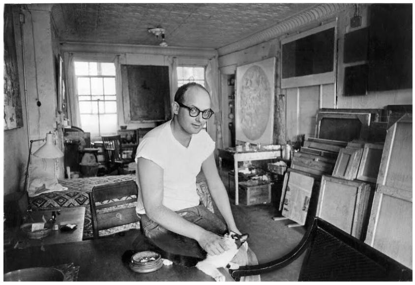 In 1960, he got a job working nights at the Museum of Modern Art’s book counter. His co-workers were Robert Ryman, Dan Flavin, and Robert Mangold. It’s pretty incredible that these four artists found each other working the night shift at a museum. They all saw that Abstract Expressionism was exhausting itself, and were all looking for the next thing