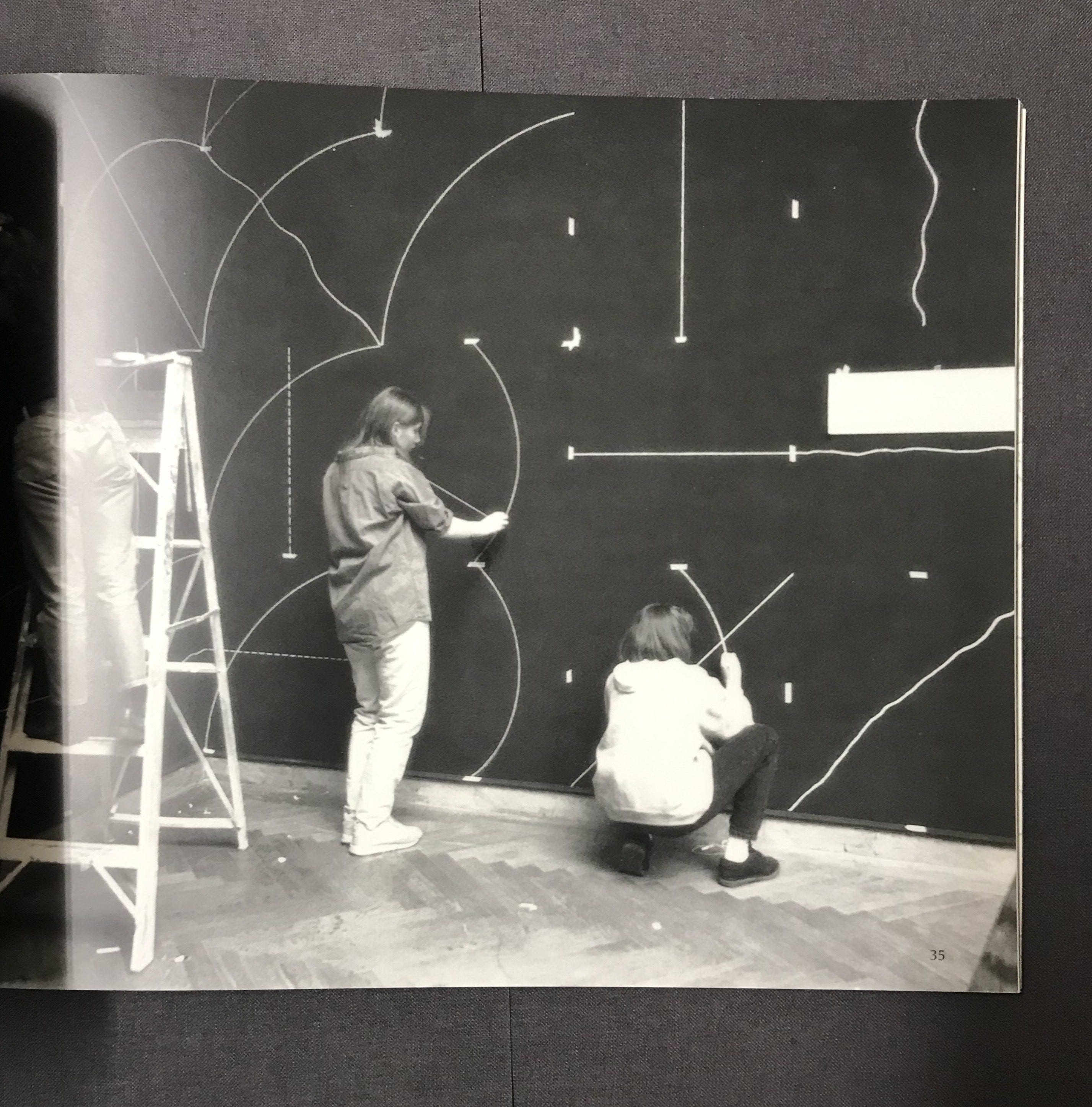 1968 (40) — First wall drawing. Paula Cooper Gallery’s inaugural show. Lines drawn in pencil directly on the wall. The instructions are the artwork. The drawing is temporary. Over 1,200 wall drawings follow.